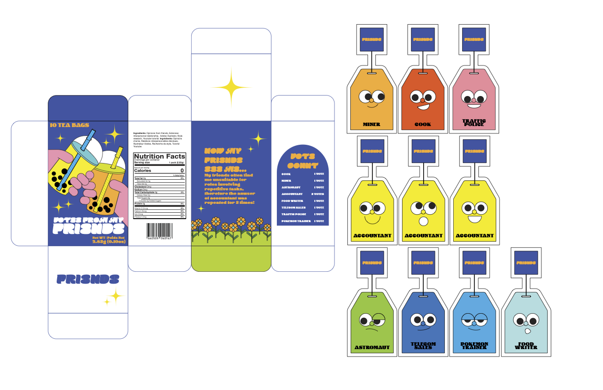 A visualization of daily feedback by shaping casual comments from friends/family/oneself into tea bag pagckage forms.