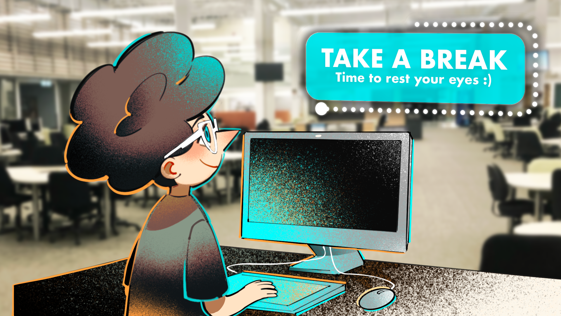 Office Doctor uses a combination of blink frequency and pupil constriction to detect is the user is engaged in prolonged screen-based activities. This allows the system to avoid interrupting users who are driving, where the pupils dilated due to focusing on distant objects.