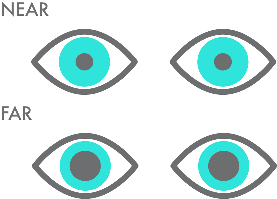 When focusing on nearby objects, our pupils constrict, for the opposite they dilate. Practising looking at objects both near and far can help relax eye muscles.
