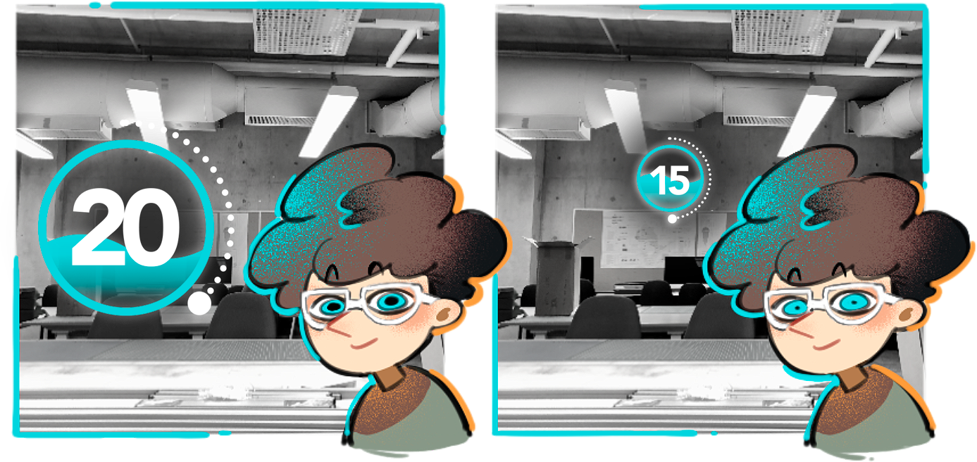 Office Doctor device utilizes augmented reality technology in smart glasses to improve individuals' lifestyle habits. The device monitors users' screen time by detecting the frequency of blinking and pupillary dilation, generating notifications every hour if the device detects that the user has been staring at something up close with pupils narrowed. The device also includes short exercises for both eye and neck training, using visual signs to guide users to turn their heads and train their eyes.